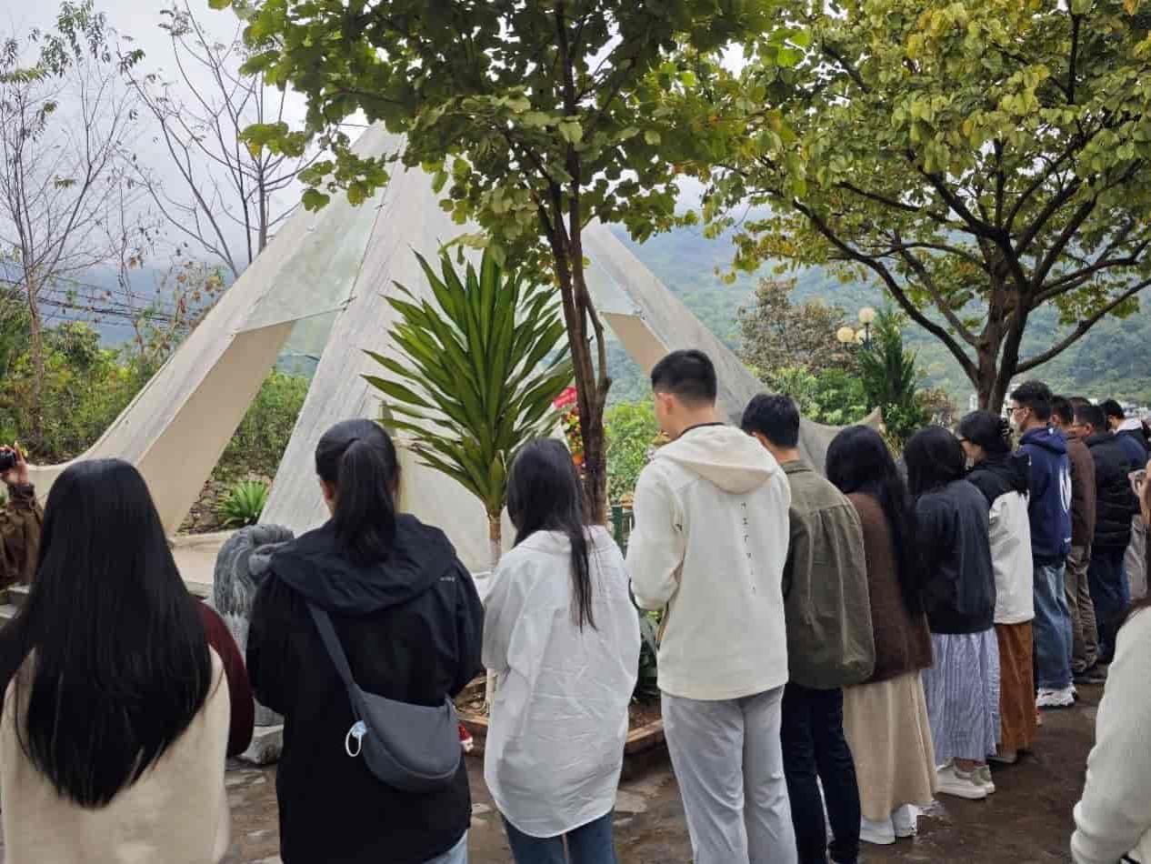 赴越访学研修团与哲学系师生共同前往越南西北部西进军团国家历史遗址,缅怀抗击帝国主义侵略的国际共产主义战士。